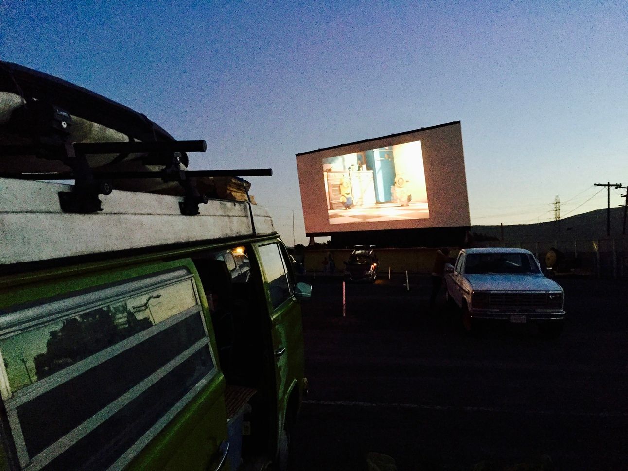 My last drive-in experience at the Sunset in San Luis Obisbo, circa 2015. Look how small that screen is!